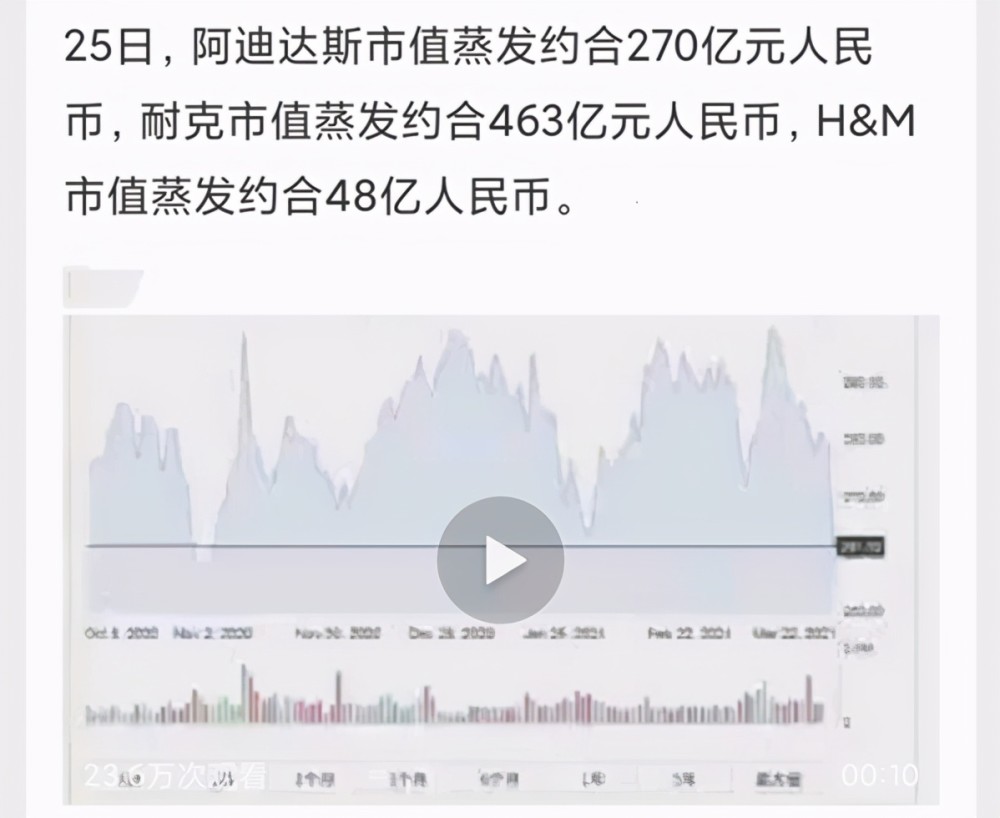市值蒸发733亿 耐克 阿迪股价大跌来源 每日经济新闻 央视新闻 环球时报 中新网 新华视点 人民日报等h M 集团一份 碰瓷 新疆棉花的声明 激怒了中国民